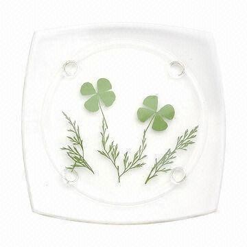 Acrylic Coaster with Genuine Flower Design, Customized Logo Prints are Accepted