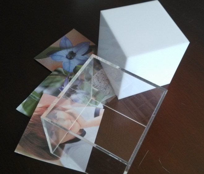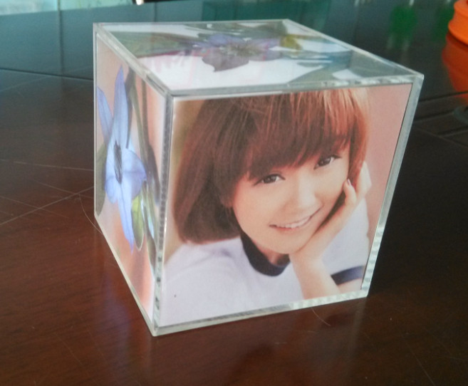 Clear perspex photo frame acrylic cube photo displays enviromental