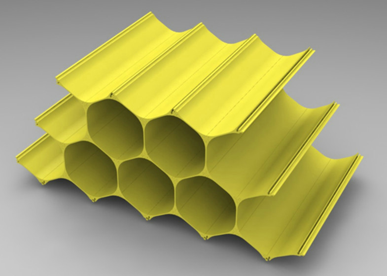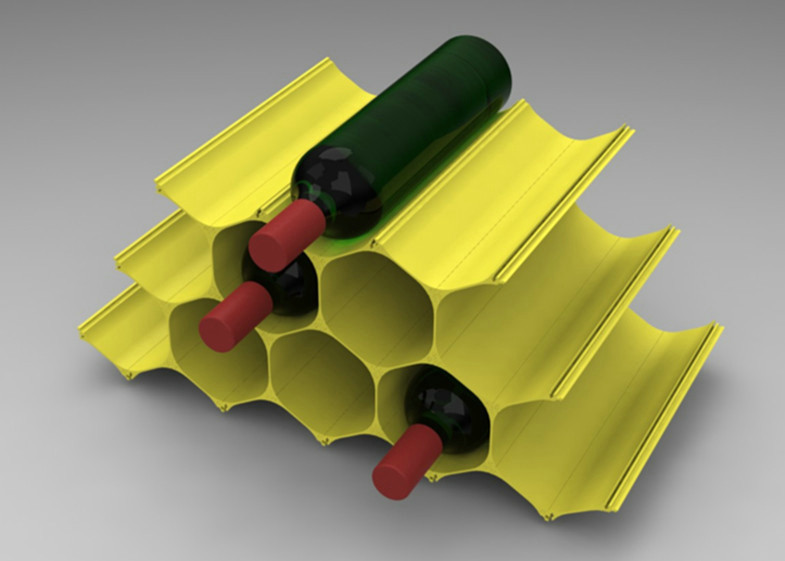 The modular design consists of a single structural element that repeats itself to form an infinite array of honeycomb structures, and can grow to fit any size wine collection.