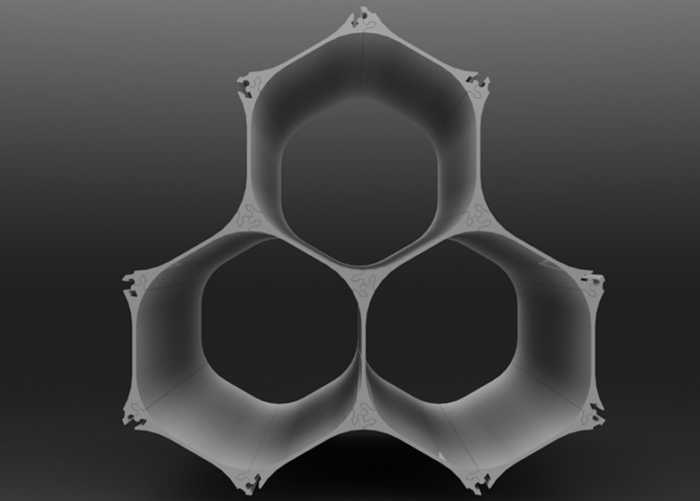 The modular design consists of a single structural element that repeats itself to form an infinite array of honeycomb structures, and can grow to fit any size wine collection.