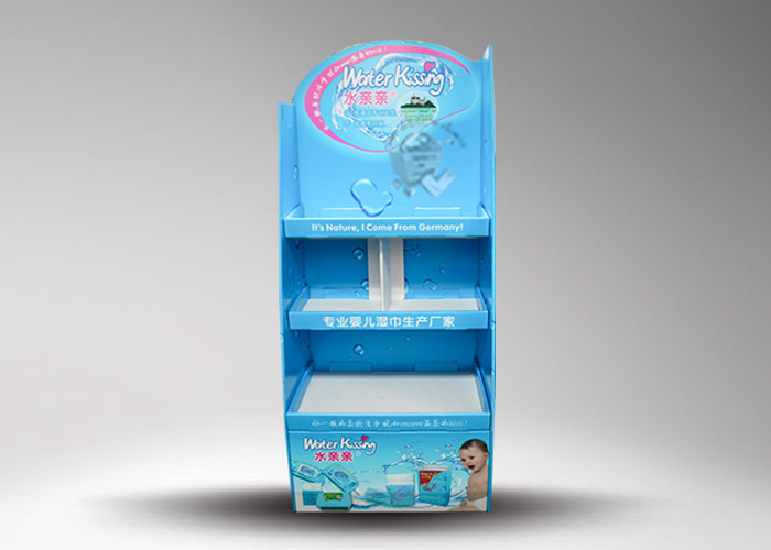 Water proof Blue cardboard display racks with three layers for wet wipes