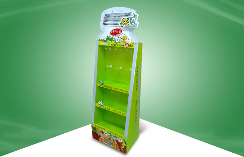 Πράσινες στάσεις επίδειξης χαρτονιού cOem το /ODM με τους γάντζους & ράφια για τα προϊόντα υγειονομικής περίθαλψης