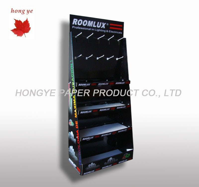 Η προωθητική κατασκευή κιβωτίων επίδειξης χαρτονιού, στάση επίδειξης χαρτονιού υπεραγορών με το γάντζο για λιανικό, κάνει το κιβώτιο επίδειξης με το προσαρμοσμένο σχέδιο (HY119)