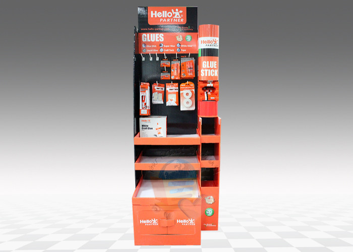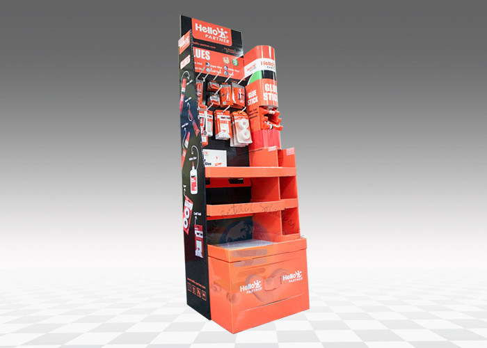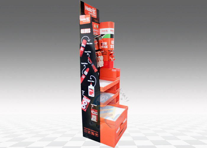 √. banco di mostra del pavimento del cartone di 3 scaffali con i ganci qui sopra per vendita al dettaglio della colla
