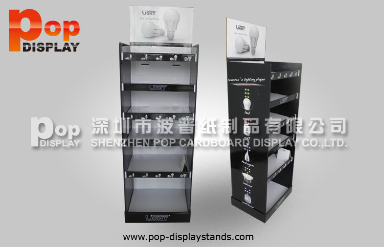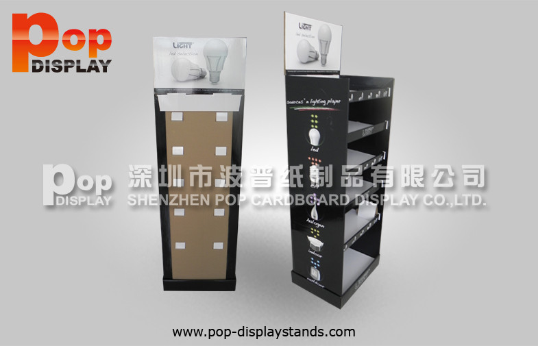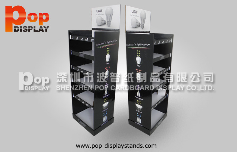 E. 私達はあなたの完全なアートワークを得、人目を引く印刷のサンプルが付いている注文 LED の球根のボール紙の陳列台を作り始めます。