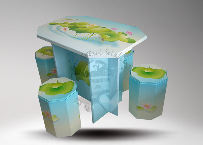 光沢のあるラミネーションとのテーブルの昇進のための印刷されたペーパー家具のボール紙の陳列台![]()