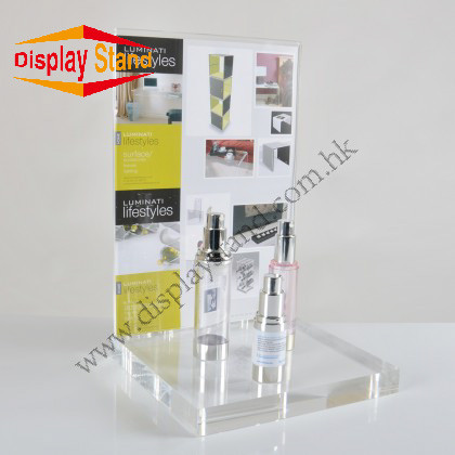 Exposições acrílicas claras superiores contrárias do cosmético com posição livre do assoalho