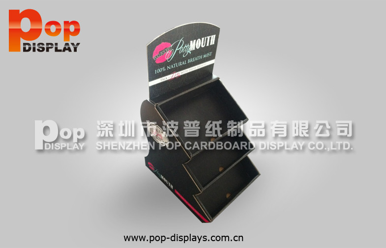 Suportes de exposição cosméticos do cartão preto da bancada do trapézio do sabão no mercado