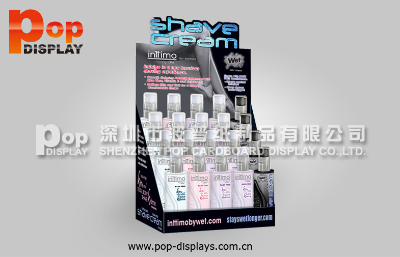 1. Este tipo do suporte de exposição cosmético é usado para a propaganda da loja varejo do creme da barbeação.