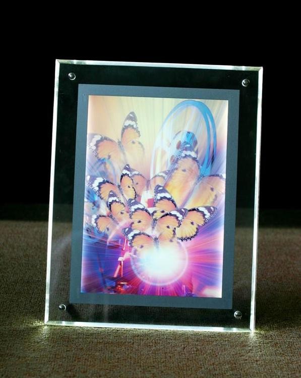 Quadro acrílico da foto com placa transparente com o suporte do acrílico da opção da luz do diodo emissor de luz