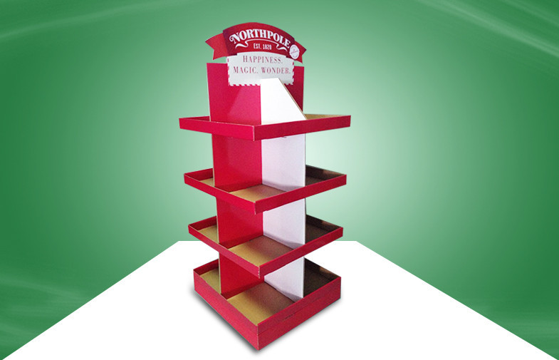 Unidades de exposição eretas livres Eco-amigáveis vermelhas do cartão ondulado personalizadas com as quatro prateleiras que Shinning a impressão deslocada