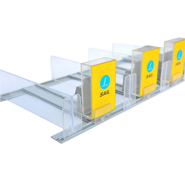 Empurrador da prateleira do supermercado do alimento, suportes varejos do sinal do plástico