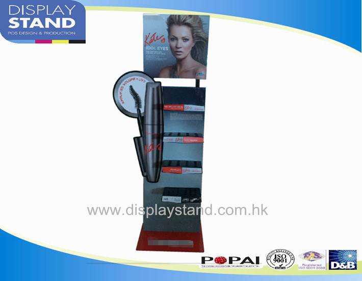 2. O material de papel forte, exposição de assoalho com impressão deslocada de CMYK, rímel do cartão do POP que vende a varejo a exposição, escaninho da exposição do retalho do supermercado, suporte da promoção do produto, montou facilmente a exposição com dever claro