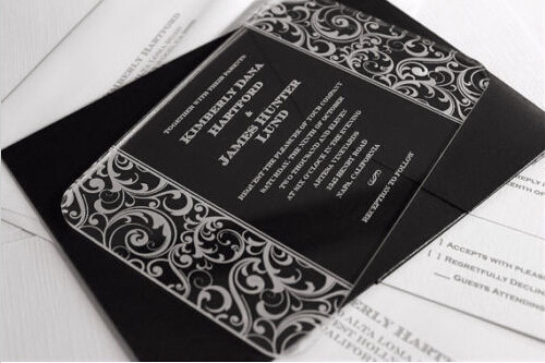 Cartão acrílico claro de luxe/seda do convite do casamento - impressão ou gravura |