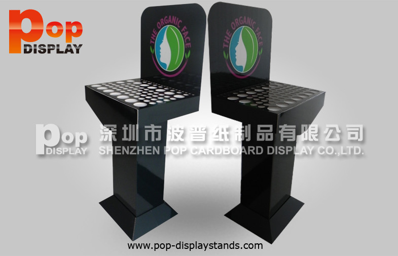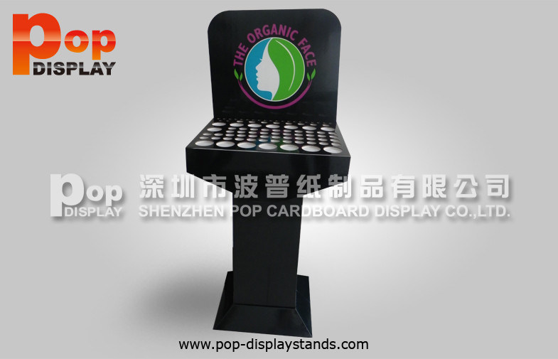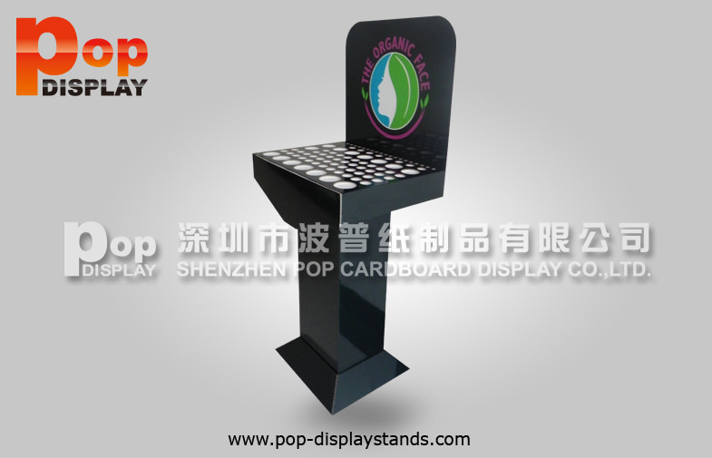 Los soportes de esta exhibición cosméticos promocionales con los productos tubulares del asimiento negro noble se hacen del papel acanalado b flauta de 3m m, de un material ligero y durable.
