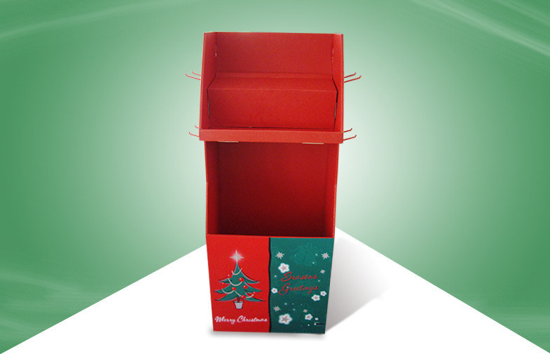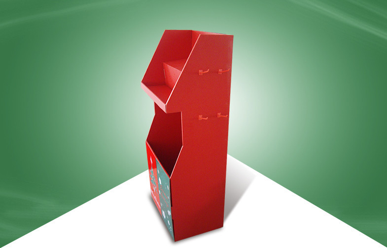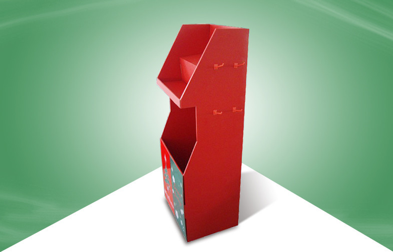 Exhibición de piso derecha libre de la cartulina de la unidad de visualización del rojo con los ganchos para los regalos de la Navidad