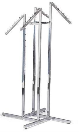 Muestre a sus clientes todos las opciones disponibles de la mercancía con los estantes de la ropa de la inclinación del cromo 4-Way. Estos estantes de la ropa son completamente ajustables, con los botones fáciles, en 3" los incrementos a partir de la 48" a 72" alto. Los cuatro brazos inclinados ofrecen 8 bolas cada uno para asegurarse de que la mercancía permanece en el lugar. El acabado cromado hace juego el diseño de casi cualquier tienda. El estante de 4 maneras es grande para que las exhibiciones de piso centrales presenten todo el nuevo inventario así como todas las opciones asociados a él. También ofrece los casquillos de extremo soldados con autógena y el nivelador ajustable se desliza. Los estantes de la ropa del cromo 4-Way están disponibles para el envío inmediato.